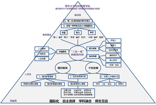 專(zhuān)業(yè)和技術(shù)知識(shí)的教授或許可以解決眼前的就業(yè),但眼界和見(jiàn)識(shí)將會(huì)決定一生的命運(yùn)。2006年10月出任清華經(jīng)管學(xué)院院長(zhǎng)的錢(qián)穎一帶領(lǐng)學(xué)院探索“通識(shí)教育與個(gè)性發(fā)展相結(jié)合”的本科教育理念。目的是要讓從清華經(jīng)管學(xué)院走出來(lái)的學(xué)生兼具“國(guó)際視野”與“中國(guó)情懷”,都要成為現(xiàn)代文明人,其中有一些成為能做大事的人。
