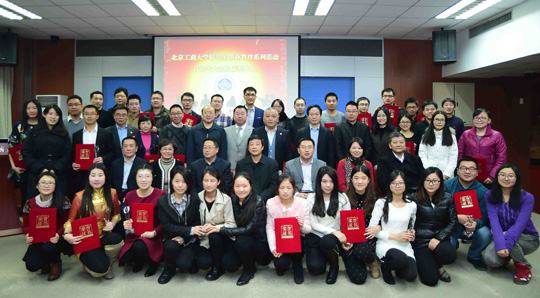 圖為北京工商大學(xué)創(chuàng)業(yè)計(jì)劃書比賽獲獎(jiǎng)成員與評(píng)委合照