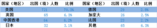 清華畢業(yè)生留學(xué)目標(biāo)地比例(上圖)