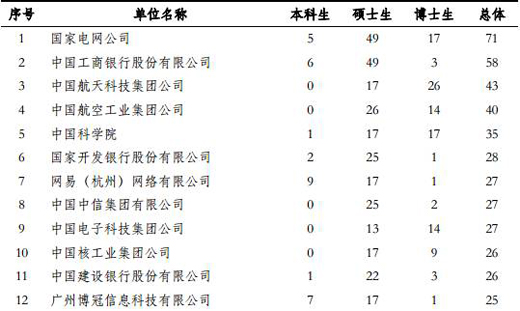 清華列的比較詳細(xì),排了前27名,排前五名的是國家電網(wǎng)、工商銀行、中國航天、中國航空和中國科學(xué)院,除了一家銀行,其他都是與科研技術(shù)相關(guān)的單位機(jī)構(gòu)。