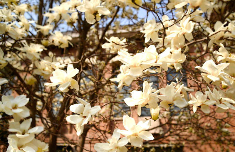 圖書館旁的一樹玉蘭 (清華大學(xué)楊可攝影)