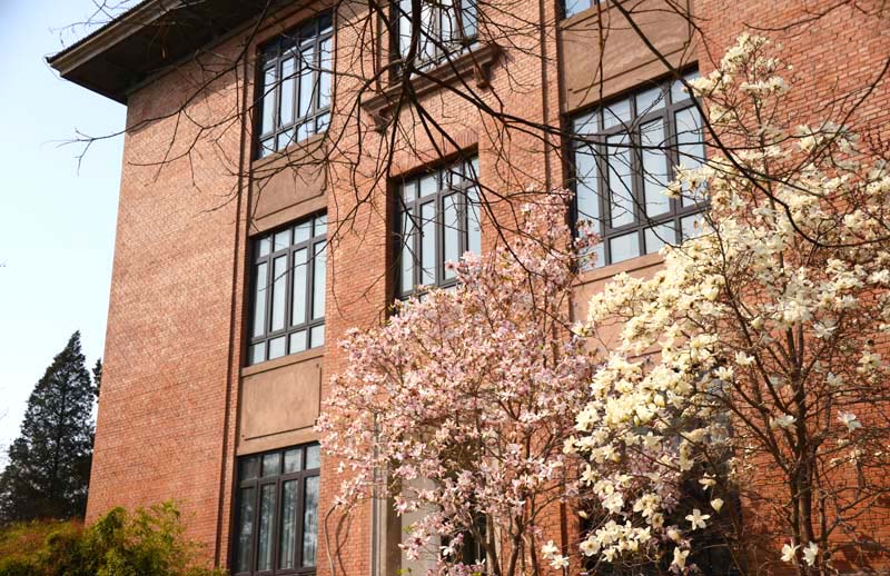 一白一紫的兩棵玉蘭 (清華大學(xué)楊可攝影)