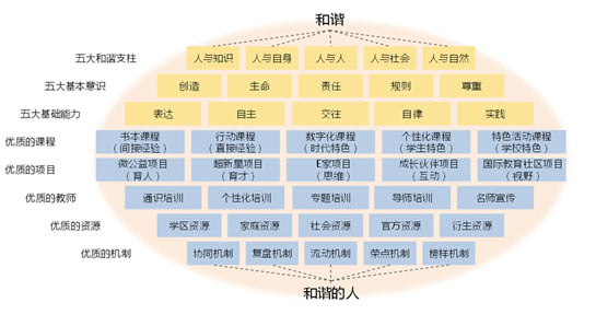“種子計(jì)劃”即:史家學(xué)區(qū)教育以“和諧”為起點(diǎn),以培養(yǎng)“和諧的人”為目標(biāo);趦(nèi)部突破,致力于形成“五大和諧支柱”、“五大基本意識(shí)”和“五大基礎(chǔ)能力”,從而夯實(shí)基礎(chǔ)教育的基礎(chǔ);基于外部打破,致力于形成包括優(yōu)質(zhì)的課程、優(yōu)質(zhì)的項(xiàng)目、優(yōu)質(zhì)的教師、優(yōu)質(zhì)的資源、優(yōu)質(zhì)的機(jī)制在內(nèi)的“五大優(yōu)質(zhì)”,為每一粒種子的生長(zhǎng)內(nèi)蘊(yùn)優(yōu)質(zhì)的教育生態(tài)。從“和諧”到“和諧的人”,史家學(xué)區(qū)教育體系尤如一粒鮮活飽滿的種子,深深植根于每一個(gè)孩子的幼小心靈中,伴其一生,惠其一生。