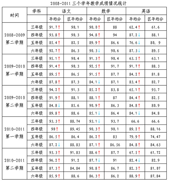 在沒有任何加班、補課,保證專時專用的情況下,學校語文學科連續(xù)多年進入?yún)^(qū)“十佳”行列;數(shù)學、英語學科的成績也在不斷進步。學校曾連續(xù)四年被評為“昌平區(qū)小學質量監(jiān)控優(yōu)秀學!薄UZ、數(shù)、英三個學科教研組多次被評為昌平區(qū)優(yōu)秀教研組,英語組被評為北京市先進教研組。從2006年到現(xiàn)在共獲得各種先進集體80多項。
