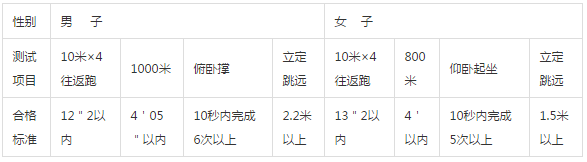 體能測試項目及合格標準