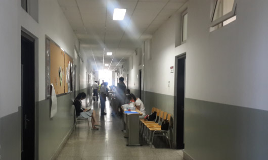 考生在教室外候考。人民網(wǎng)記者郝孟佳攝影