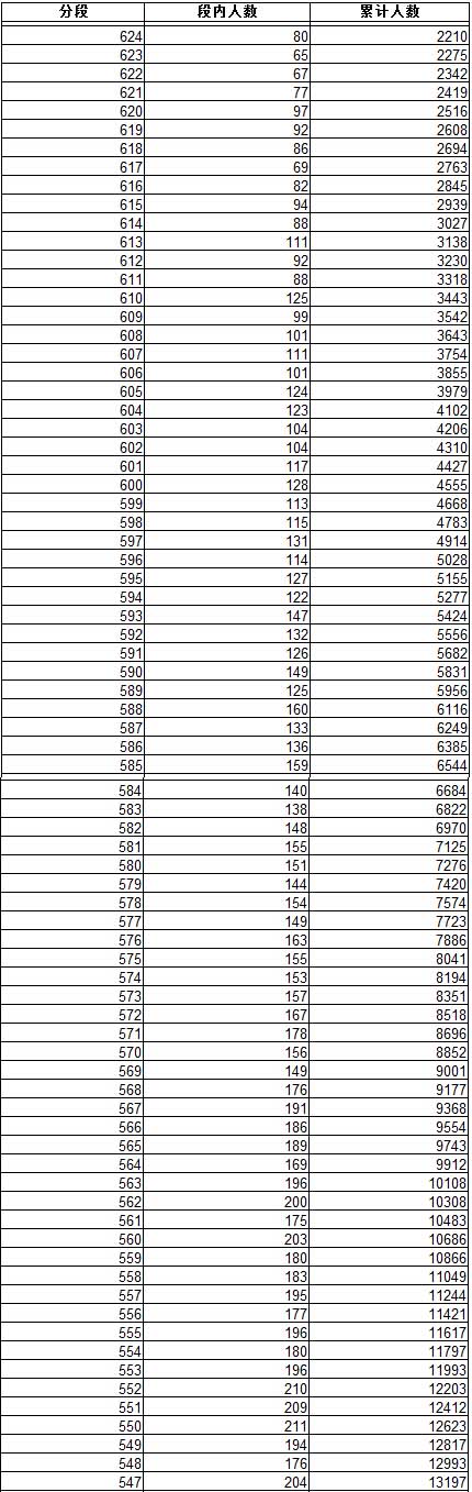 黑龍江省2015年高考理科一分段統(tǒng)計(jì)表【2】