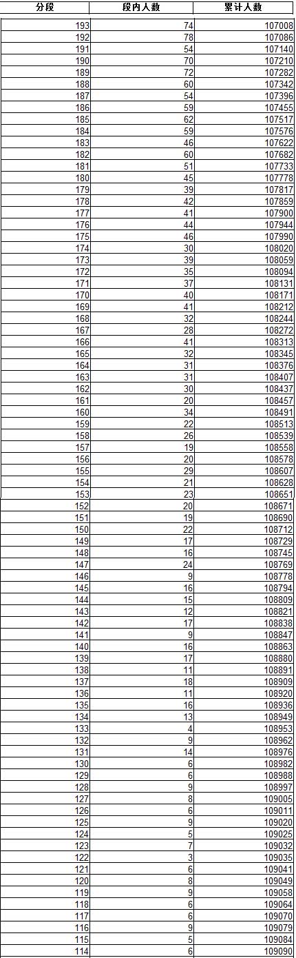 黑龍江省2015年高考理科一分段統(tǒng)計(jì)表【7】