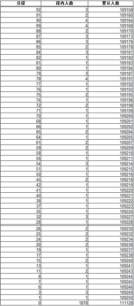 黑龍江省2015年高考文科一分段統(tǒng)計(jì)表【8】