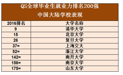 世界大學(xué)QS畢業(yè)生就業(yè)力排名 清華第9北大15