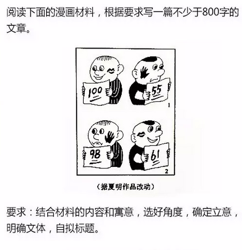 要求考生根據漫畫材料,寫一篇不少于800字的文章。結合材料的內容和寓意,選好角度,確定立意,明確文體,自擬標題,不要套作,不得抄襲。