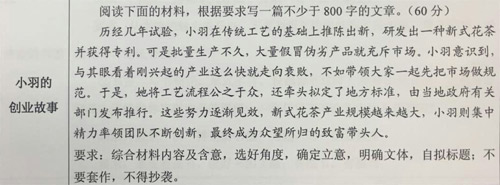 人民網(wǎng)北京6月7日電 (記者 郝孟佳)2016年高考語文考試結(jié)束,以下為2016年全國卷III 高考作文題:花茶新工藝創(chuàng)業(yè)故事