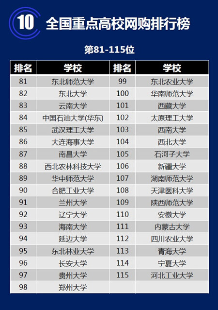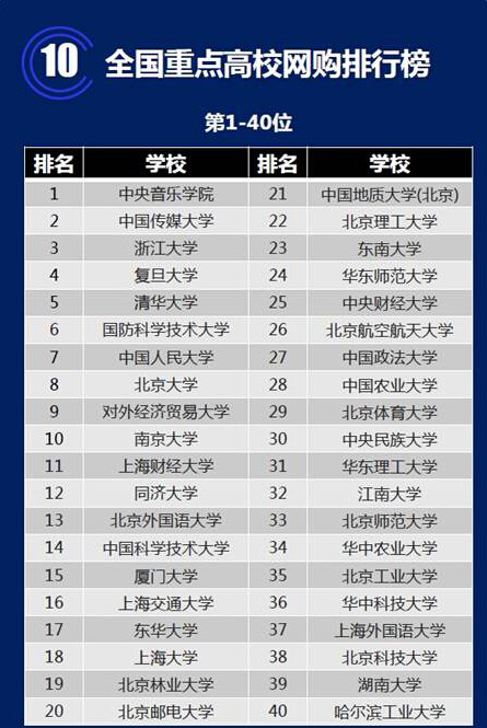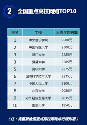 全國(guó)重點(diǎn)高校網(wǎng)購(gòu)排行榜