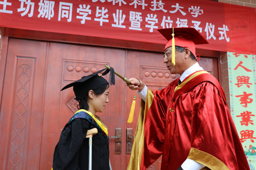 2016年畢業(yè)季,孫其信校長為全校5252名本科畢業(yè)生和338名博士畢業(yè)生以及2113名碩士畢業(yè)生親手撥穗并授予學位證書,當然,他也沒有忘記無法親臨畢業(yè)典禮現(xiàn)場的王功娜。
