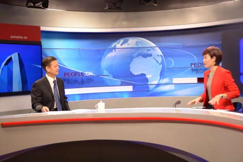 馬建斌(左一)接受人民網(wǎng)專(zhuān)訪