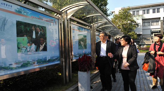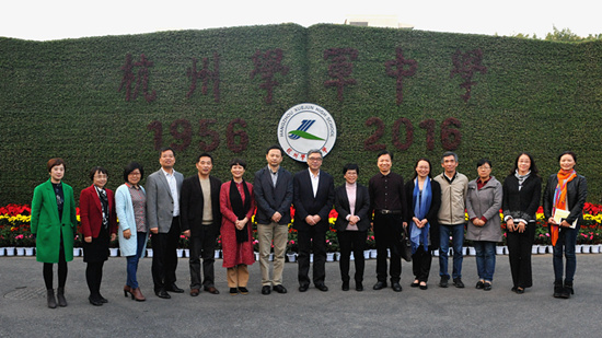 朱永新考察杭州學(xué)軍中學(xué)(圖片來源:杭州學(xué)軍中學(xué))