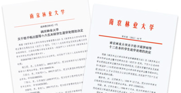南京林業(yè)大學(xué)印發(fā)的退學(xué)處理決定。來源:南林大官方網(wǎng)站