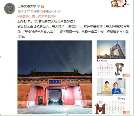 圖7:@上海交通大學(xué) #清晨那么美,約你來晨讀#欄目截圖