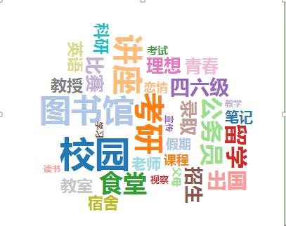 根據(jù)網(wǎng)民在高校自媒體平臺及相關(guān)門戶網(wǎng)站留言評論情況,整理出詞頻云圖,網(wǎng)民主要關(guān)注“考研”、“公務(wù)員”、“出國留學(xué)”、“招生”等話題信息,說明網(wǎng)民主要還是關(guān)心高校動態(tài)及學(xué)生利益相關(guān)議題。