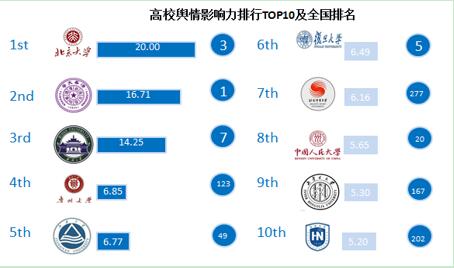 1. 高校網(wǎng)絡(luò)輿論影響力TOP10全國排名情況