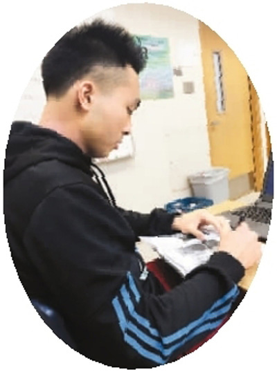 圖為維斯正在網(wǎng)上學(xué)習(xí)美國課程。