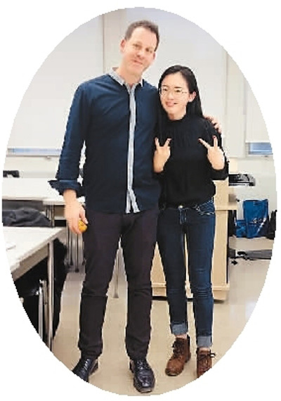 圖為夏菲(右)和教授James Corcoran合影。