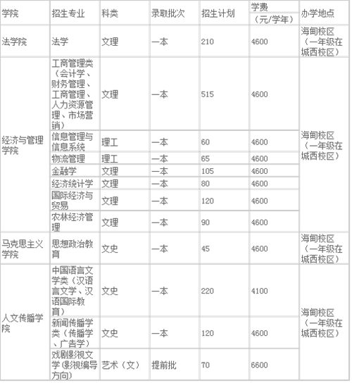 備注:1、各專業(yè)在各省具體招生計(jì)劃以各省招生辦公室公布為準(zhǔn),學(xué)校亦將于5月下旬在學(xué)校招生信息網(wǎng)(http://www.hainu.edu.cn/zhaosheng/)網(wǎng)上公布;