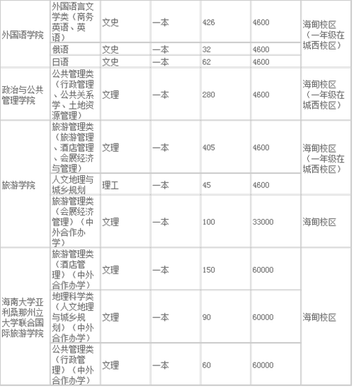 2、海甸校區(qū)招生專業(yè)在上海、山東為本科普通批,在海南為本科A批,在浙江為普通類批次,在其他27個(gè)。ㄊ、區(qū))錄取批次均為本科一批。儋州校區(qū)招生專業(yè)在山東為本科普通批、海南為本科A批,浙江為普通類批次,安徽、福建、甘肅、廣西、貴州、河南、湖北、江西、山西、四川、云南共11個(gè)。▍^(qū))為本科二批。