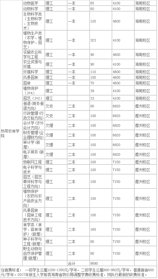 附件:海南大學(xué)2017 年招生專業(yè)、科類、錄取批次、招生計(jì)劃、學(xué)費(fèi)和住宿費(fèi)收費(fèi)標(biāo)準(zhǔn)一覽表