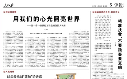 此外,人民日?qǐng)?bào)5月的“唱響一帶一路時(shí)代和聲”的系列評(píng)論和5月18日的評(píng)論員文章《用我們的心光照亮世界——讓一帶一路世紀(jì)工程造福各國(guó)人民》恰好緊扣北京高考兩篇大作文題,“說(shuō)紐帶”、“共和國(guó),我為你拍照”。