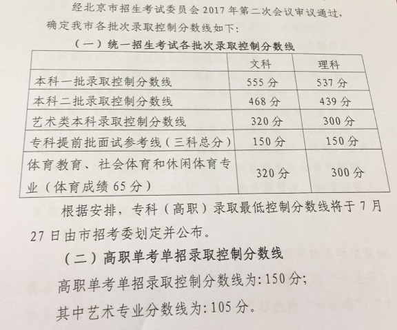 2017年北京高考分數(shù)線出爐 一本文科555分理科537分