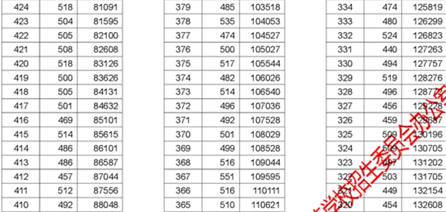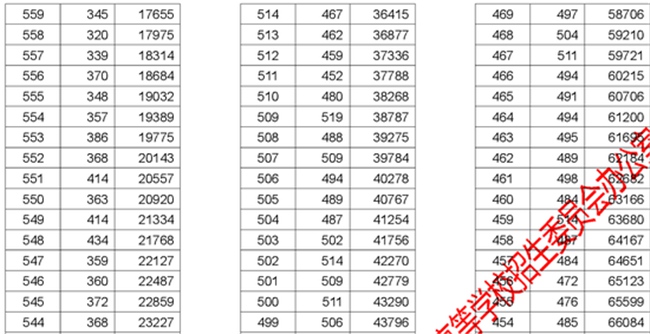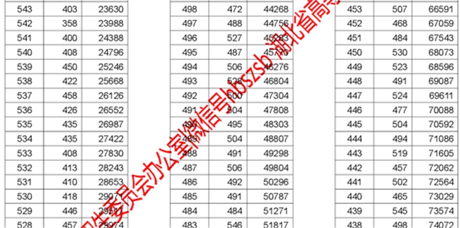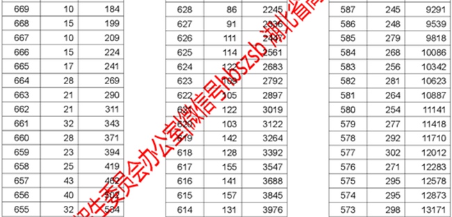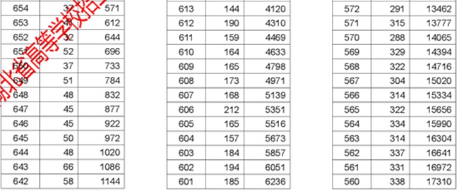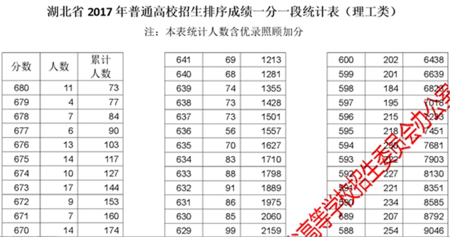 2017年湖北高考理工類分?jǐn)?shù)段統(tǒng)計(jì)表