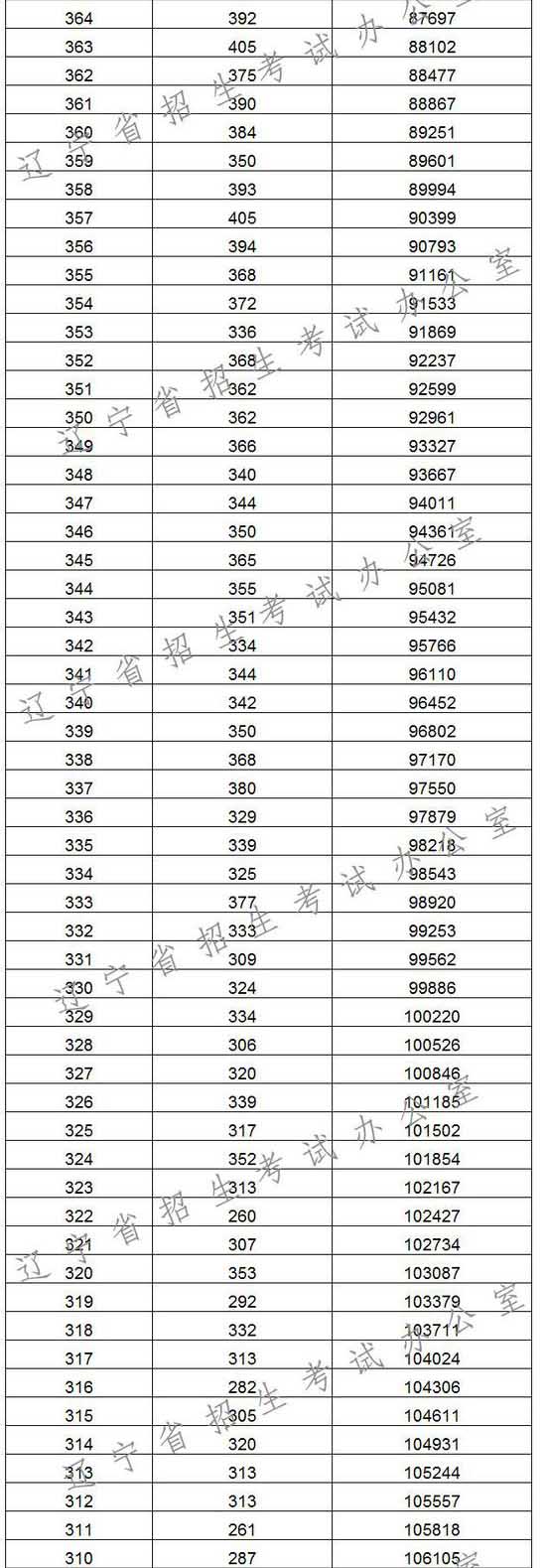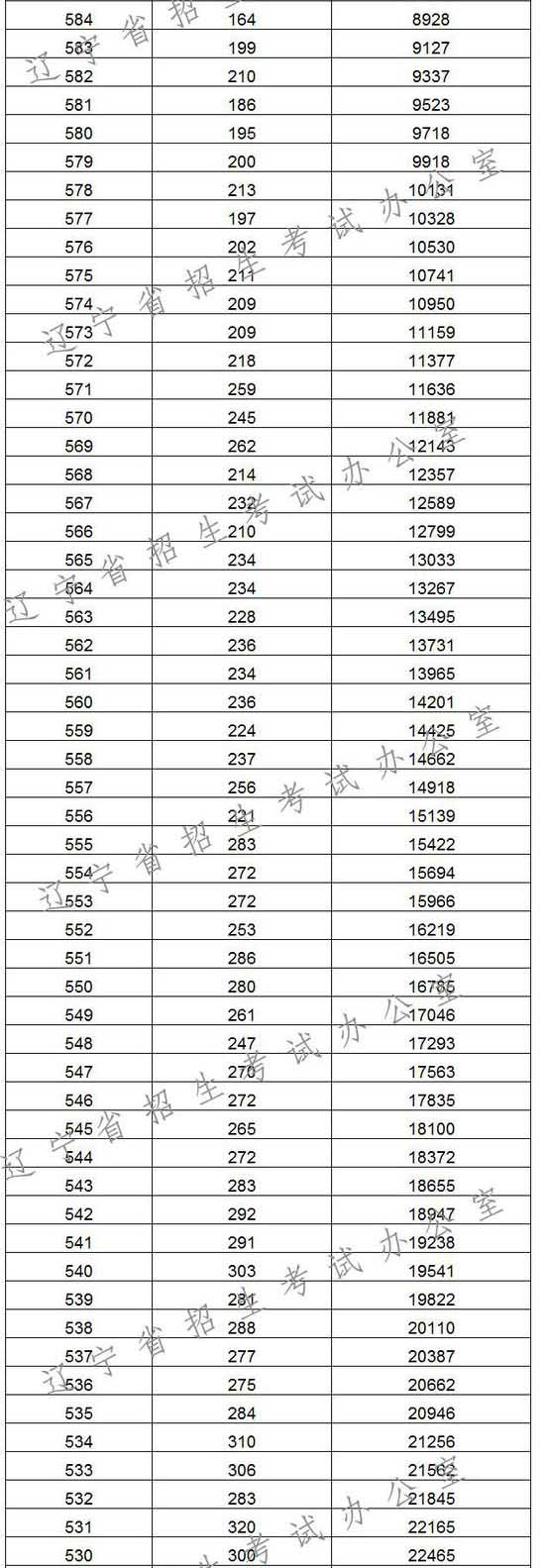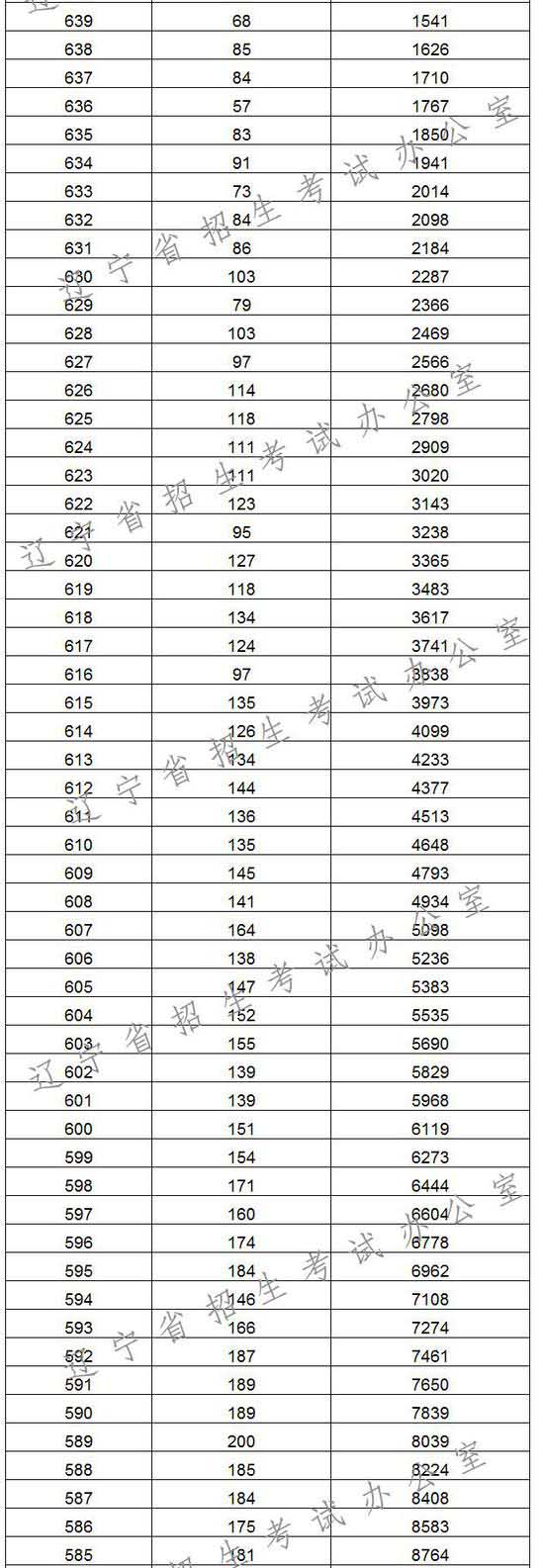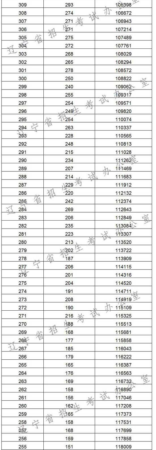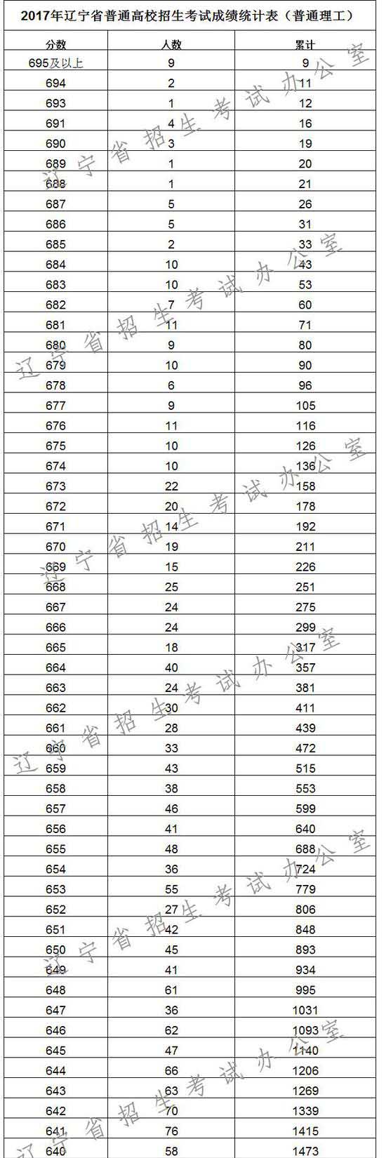 2017年遼寧高考理科分?jǐn)?shù)段統(tǒng)計表