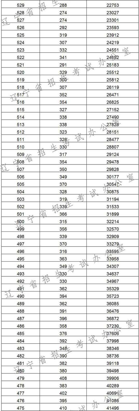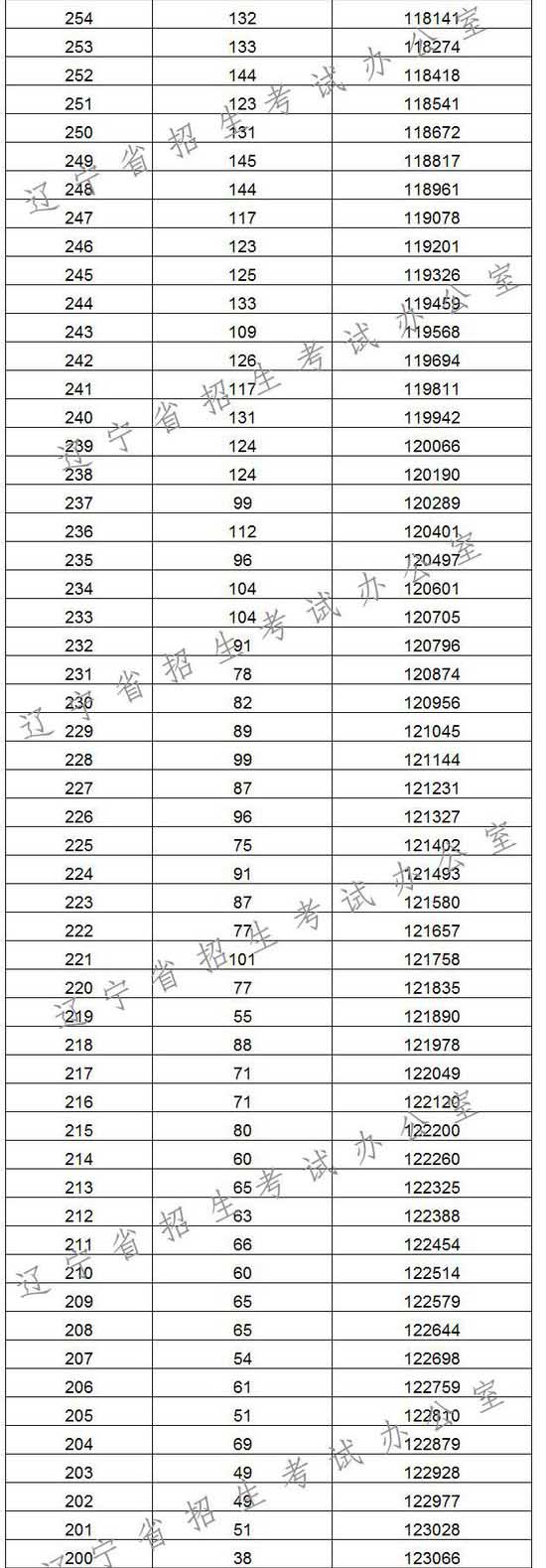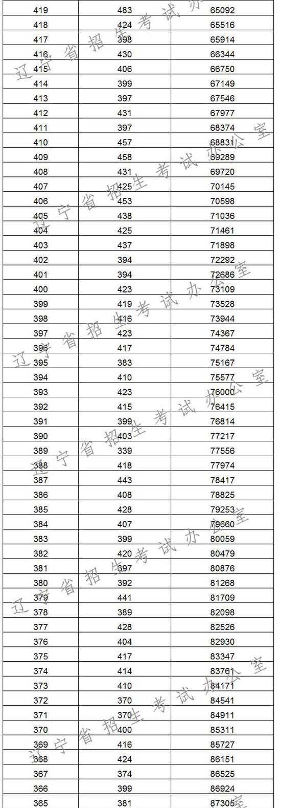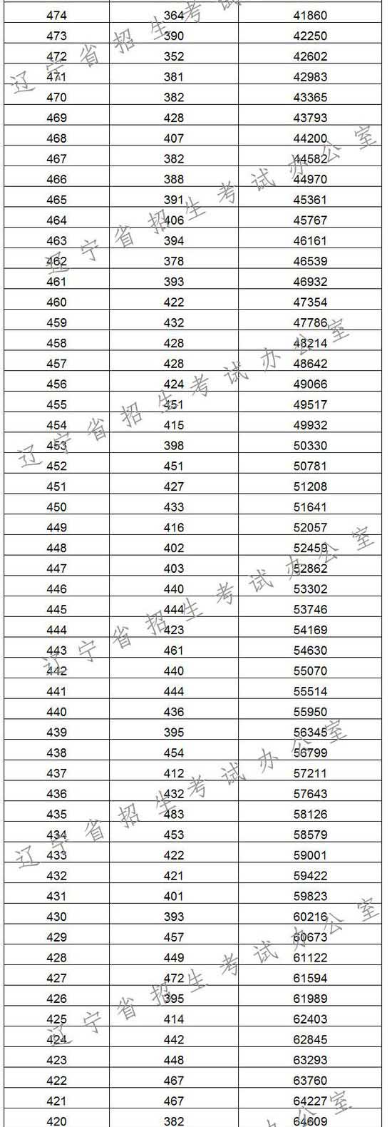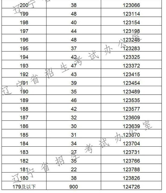 2017年遼寧高考理科分?jǐn)?shù)段統(tǒng)計表