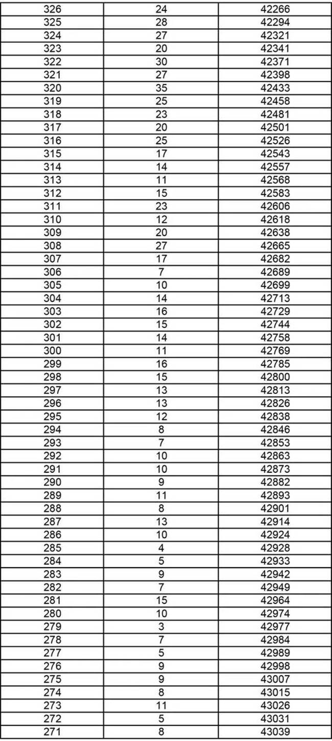 人民網(wǎng)北京6月24日電 2017年上海高考綜合類分?jǐn)?shù)段統(tǒng)計(jì)情況如下表: