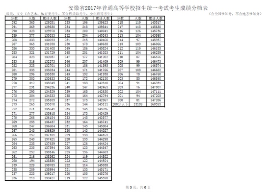 人民網(wǎng)北京6月25日電(趙英梓 實(shí)習(xí)生方萌萌)安徽教育考試院最新公布2017年普通高考文科成績(jī)分段統(tǒng)計(jì)表,詳細(xì)如下:
