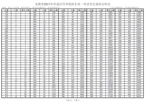 人民網(wǎng)北京6月25日電(趙英梓 實(shí)習(xí)生方萌萌)安徽教育考試院最新公布2017年普通高考理科成績分段統(tǒng)計(jì)表,詳細(xì)如下: