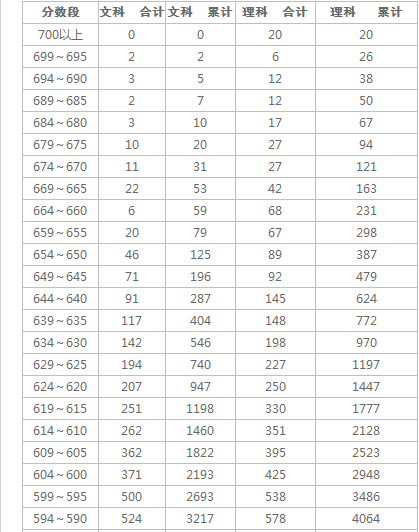 云南教育考試院最新公布2017年普通高考成績分段統(tǒng)計表,詳細如下:
