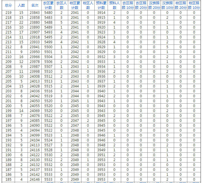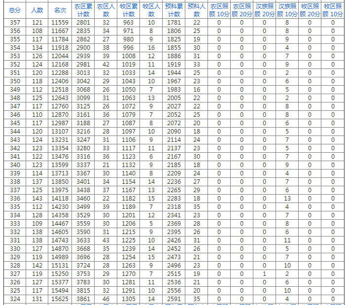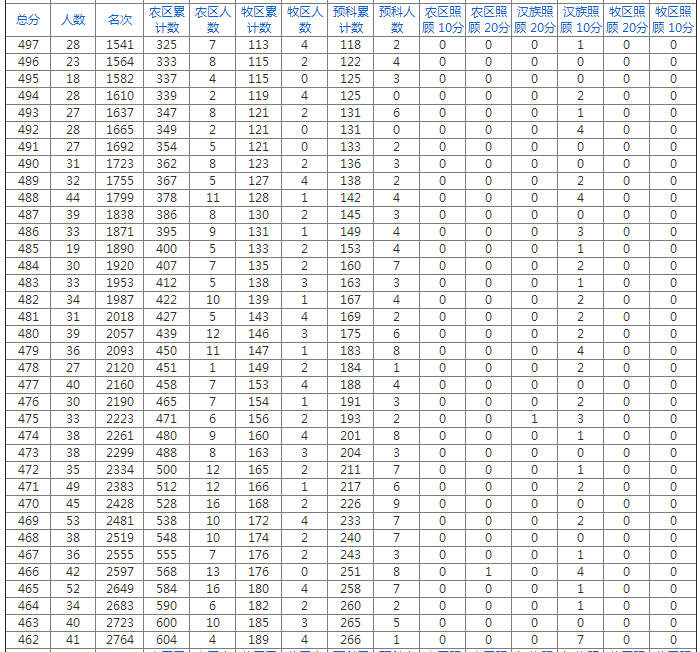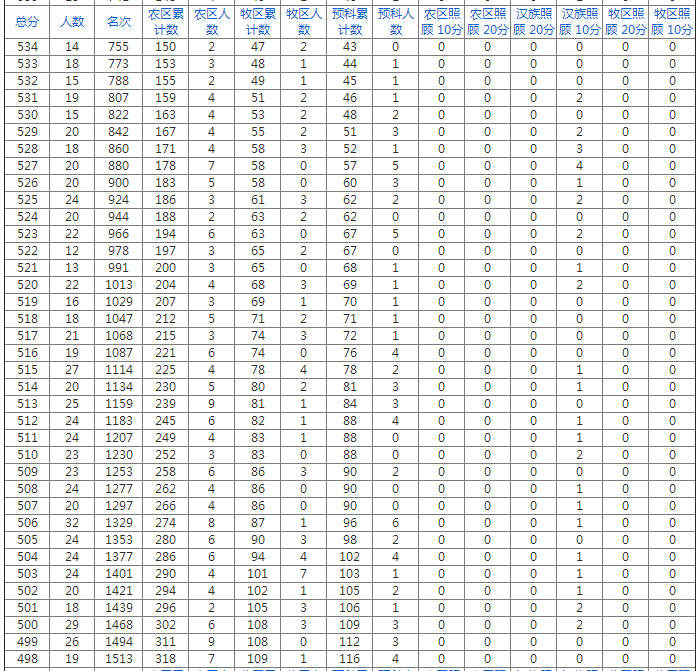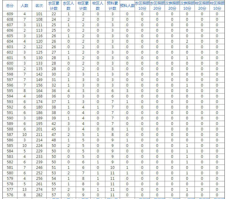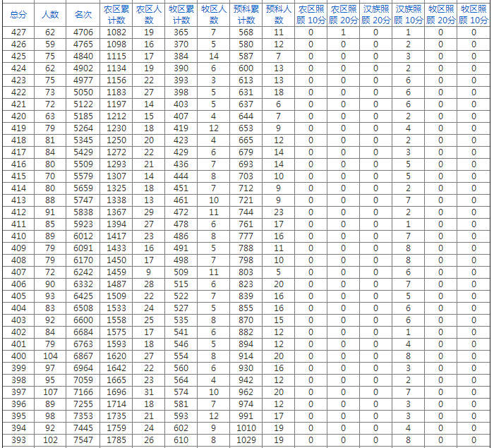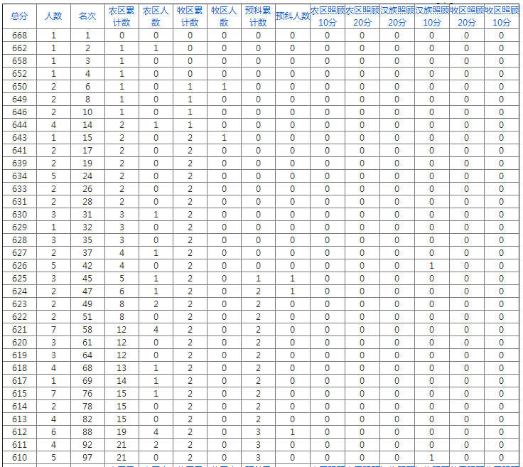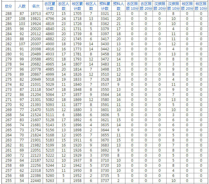 2017年青海普通高考理科類分?jǐn)?shù)段統(tǒng)計(jì)表詳細(xì)如下: