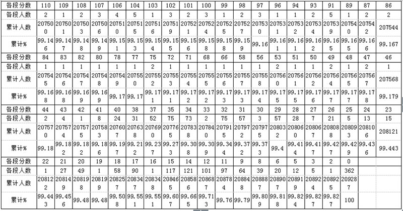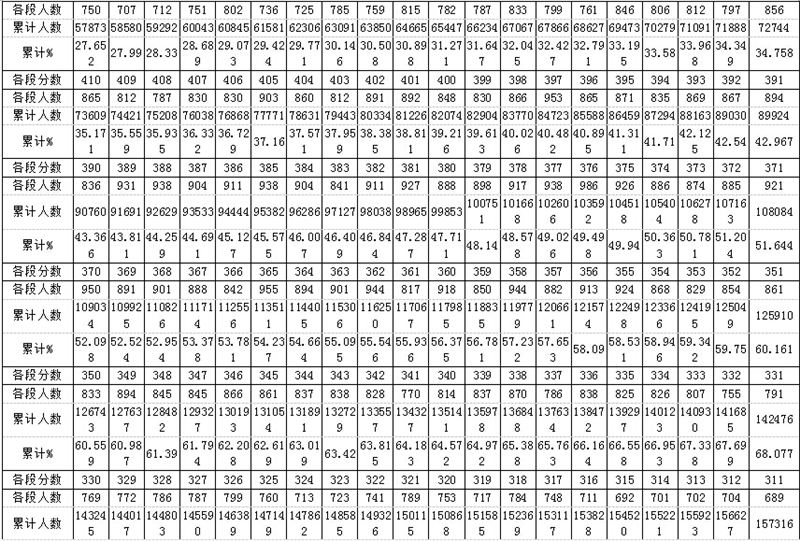 2017年貴州普通高考理工類分數段統計表詳細如下: