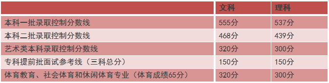 一、統(tǒng)一招生考試各批次錄取最低控制分?jǐn)?shù)線