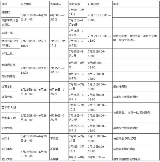 河南省2017年高考志愿填報(bào)時(shí)間安排