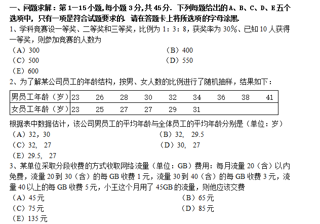 2018年考研管理類聯考試題及參考答案