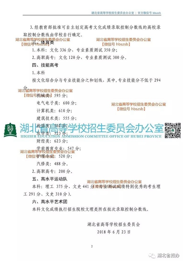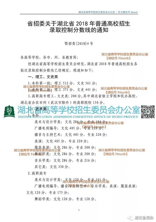 湖北省2018招生錄取一本線文科561分 理科512分
