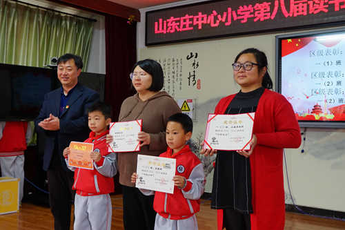 4月23日,山東莊中心小學(xué)第八屆讀書節(jié)開幕。本屆讀書節(jié)將圍繞“我們愛讀書 我們愛祖國(guó)”,開展“班級(jí)讀書會(huì)”、“讀書沙龍”、“校園圖書漂流”等系列讀書活動(dòng),表達(dá)對(duì)祖國(guó)媽媽的深深愛戴,慶祝新中國(guó)成立70周年。開幕式上,對(duì)書香教師、書香少年、書香班級(jí)、書香家庭進(jìn)行了表彰,教師、學(xué)生、家長(zhǎng)進(jìn)行了誦讀展示。