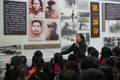進入紀念館,小朋友們就被歷史的沉重感所感染,沒有了往日的嬉笑,神情嚴肅,緩步前移,認真地聆聽著講解員阿姨講述的魚子山根據(jù)地軍民為了民族的解放拋頭顱、灑熱血的英勇事跡,觀看了抗日戰(zhàn)爭一些珍貴的史料圖片、實物展品。大家都被先烈們的革命斗爭故事和英勇的抗爭精神深深感動著。接著,小朋友們懷著無比崇敬的心情向烈士們獻上了自己親手制作的花朵。王一博小朋友激動地說:“我們永遠不要忘記偉大的革命英雄們。我們要珍惜現(xiàn)在的美好生活,在幼兒園里快樂的游戲,認真的學習,長大后為祖國做貢獻!”