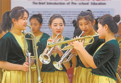 學前教育專業(yè)學生交流器樂演奏。張學軍/攝