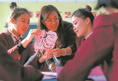 教師指導學前教育專業(yè)學生學習剪紙。張學軍/攝