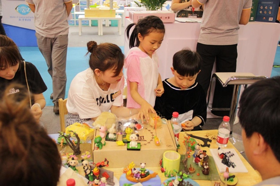 展會現(xiàn)場,參展商正在給家長、孩子作介紹 吳夢萱/攝