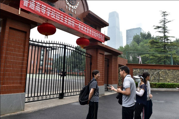 6日下午,北京市日壇中學(xué)考點(diǎn)前部分家長(zhǎng)提前“踩點(diǎn)”(翁奇羽/攝)